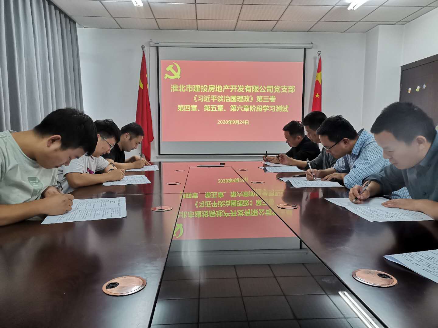 房地產(chǎn)黨支部9月24日組織全體黨員、入黨積極分子在會議室開展《習(xí)近平談治國理政》第三卷重要知識點(diǎn)測試。