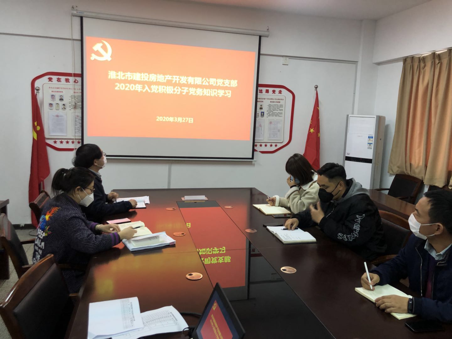 為貫徹黨員發(fā)展工作方針,提高入黨積極分子的思想政治素質(zhì),3月27日下午,房地產(chǎn)黨支部組織開展2020年入黨積極分子黨務(wù)知識(shí)培訓(xùn),來(lái)自黨支部的10名入黨積極分子、發(fā)展對(duì)象參加了學(xué)習(xí)培訓(xùn)。