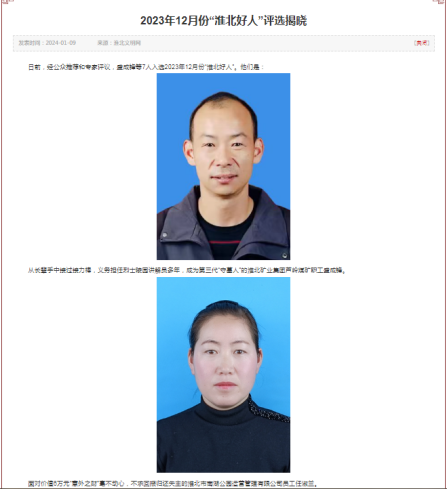 南湖公園公司第一時間將任淑蘭的事跡整理上報市文明辦參加“淮北好人”評選,2024年1月份評選揭曉,經(jīng)過公眾推薦和專家評議,面對價值6萬元“意外之財”毫不動心,不求回報歸還失主的任淑蘭成功當選2023年12月份“淮北好人”。