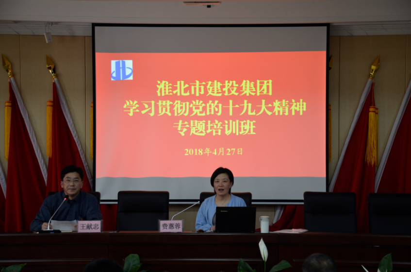 為深入學(xué)習(xí)貫徹黨的十九大精神,4月27日下午,市建投集團(tuán)在五樓會(huì)議室舉辦黨的十九大精神專題培訓(xùn)班?;幢笔形h校校委委員、法學(xué)與管理教研室主任費(fèi)蕙蓉教授為淮北市建投集團(tuán)廣大黨員干部專題解讀了習(xí)近平新時(shí)代中國(guó)特色社會(huì)主義思想和黨的十九大精神,來自集團(tuán)公司的黨員干部近130人參加了本次專題培訓(xùn)。