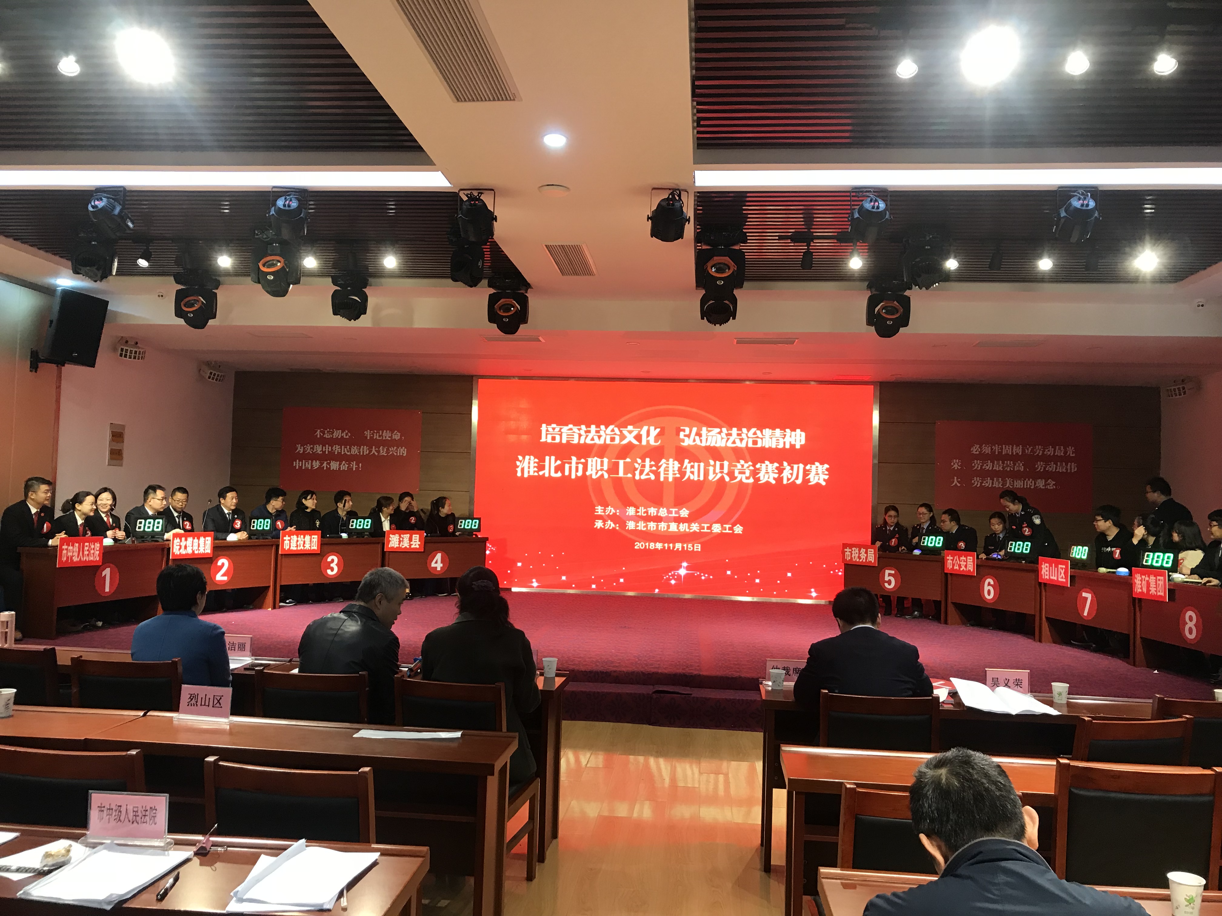 11月15日,“培育法治文化 弘揚法治精神”職工法律知識競賽在市職工服務中心舉行。為深入學習貫徹習近平新時代中國特色社會主義思想和黨的十九大精神以及中國工會十七大精神,進一步落實我市“七五”普法規(guī)劃,豐富法治教育方式和內容,提升全市工會干部和廣大職工的法治素養(yǎng)和道德素質,市總工會在全市范圍開展了“培育法治文化 弘揚法治精神”主題活動,市建投集團派出代表隊參賽。經過激烈角逐,淮北市建投集團代表隊獲得優(yōu)勝獎。