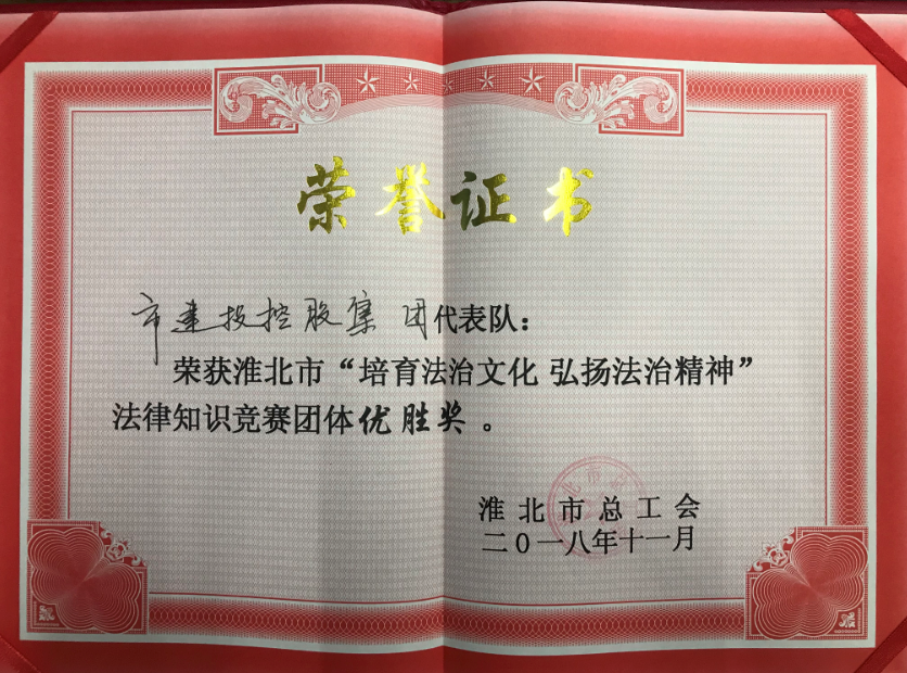 淮北市建投集團獲得淮北市職工法律知識競賽優(yōu)勝獎
