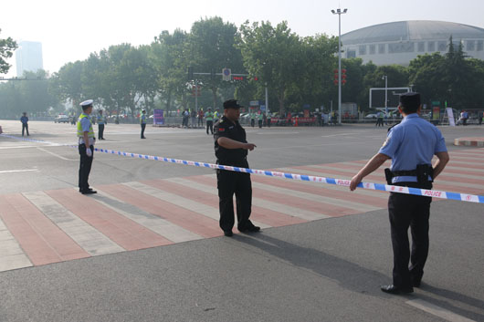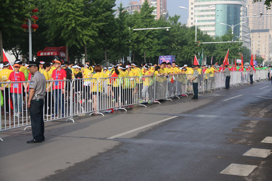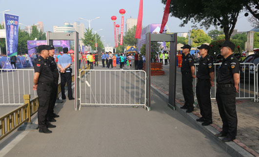 13日凌晨5:30分,負(fù)責(zé)市府廣場周邊區(qū)域的安保人員全部到崗。運(yùn)動(dòng)員入口安全檢查、重要部位值守、秩序維持、車輛指引、賽道沿線封閉防控等安保工作有序進(jìn)行。