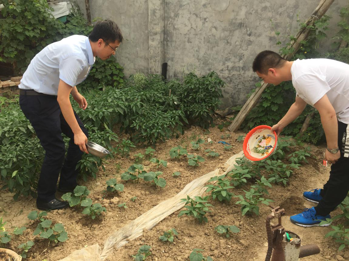 天氣炎熱,幫扶小組囑咐王心及其妻子保護(hù)身體,注意防暑降溫,并為其打掃庭院,灌溉院內(nèi)菜地。