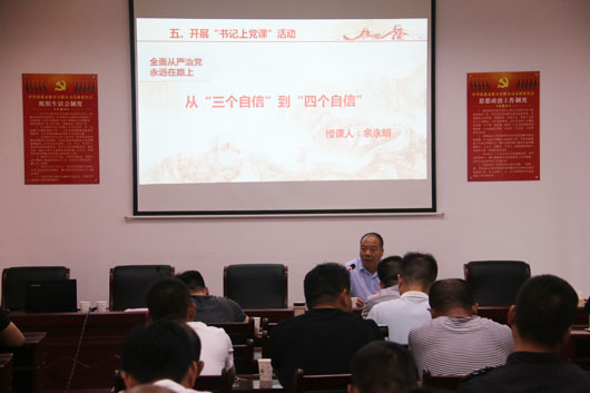 在最后開展的“書記上黨課”活動中,公司黨支部書記作了“從三個自信”到“四個自信”主題教育。告誡公司廣大黨員同志要倍加珍惜、長期堅持和不斷發(fā)展黨歷經(jīng)艱辛開創(chuàng)的道路,高舉中國特色社會主義偉大旗幟,堅定道路自信、理論自信、制度自信、文化自信,貫徹黨的基本理論、路線、方針,為實現(xiàn)中華民族偉大復興的中國夢而奮斗。