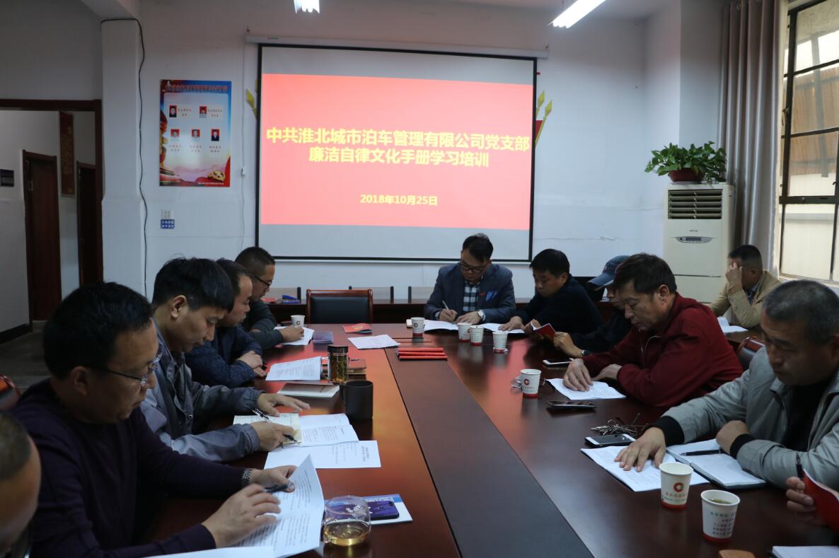 城泊公司黨支部組織學(xué)習(xí)《淮北城市泊車管理有限公司廉潔自律文化手冊(cè)》