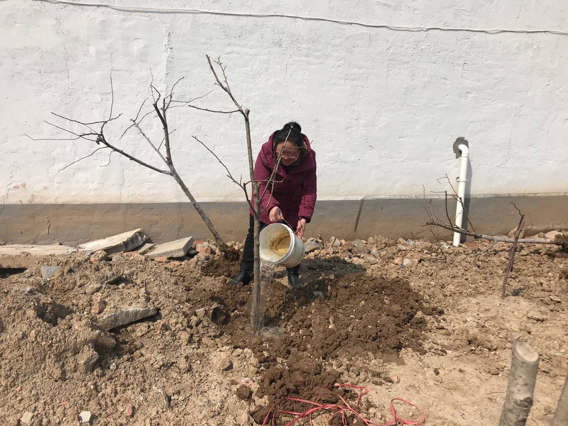 生態(tài)景觀公司扶貧小組一行4人,3月25日驅(qū)車帶著5棵蘋果樹苗來到火神廟村呂秀英老人家進(jìn)行樹苗補種。大家分工植樹,有的挖坑,有的扶樹,有的培土,有的澆水,每道工序有條不紊,一片繁忙。扶貧小組成員不辭辛苦,以實際行動投身到扶貧工作中去,為貧困戶獻(xiàn)出一份愛心,點燃一盞希望。助力貧困戶加快脫貧致富步伐,共同邁入全面小康。