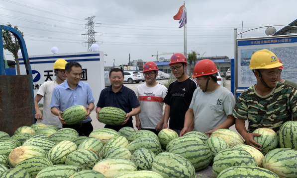 時(shí)值炎炎夏日、酷暑三伏,臨投公司各在建項(xiàng)目施工一線人員依然堅(jiān)守在工作崗位上,為煤化工基地的發(fā)展揮灑著汗水。為了給施工一線人員送去絲絲清涼和關(guān)懷,臨投公司于7月18日前往火神廟村貧困戶戴鳳英家購(gòu)買了愛心西瓜2200斤,并赴各在建項(xiàng)目現(xiàn)場(chǎng),將愛心西瓜送到了施工一線人員手中,向他們?cè)诟邷乜崾钪械男量鄤趧?dòng)表示慰問,并要求各施工單位做好防暑降溫工作,確保施工安全。