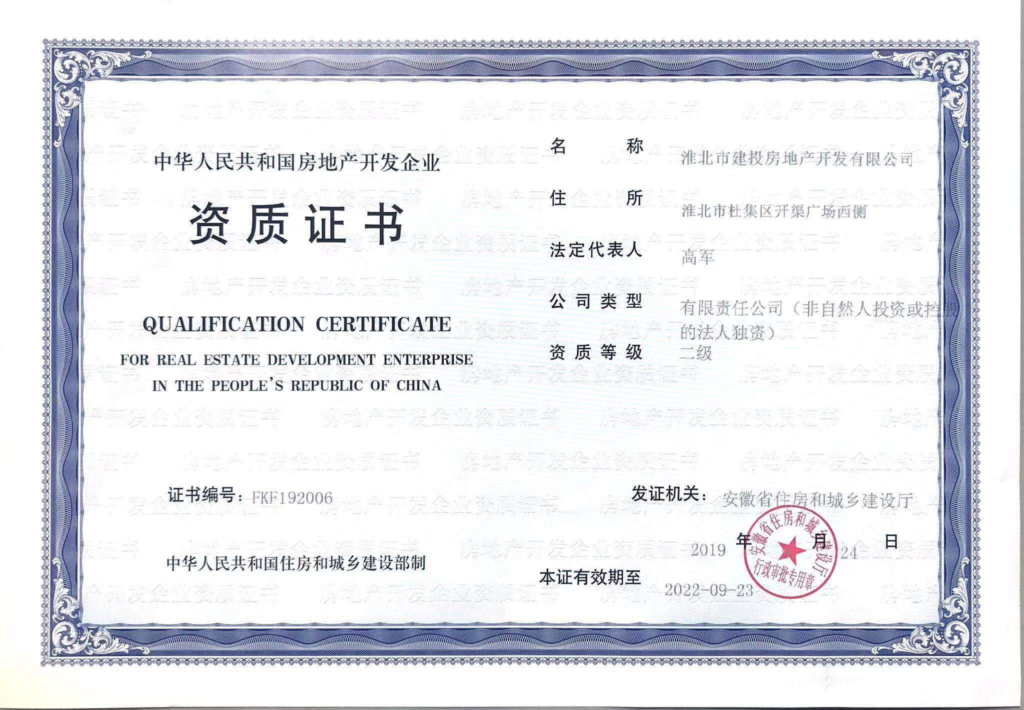 2019年9月24日,經(jīng)安徽省住房和城鄉(xiāng)建設廳核準并向淮北市建投房地產(chǎn)開發(fā)有限公司頒發(fā)了房地產(chǎn)開發(fā)企業(yè)二級資質(zhì)。據(jù)悉,淮北市僅有5家房地產(chǎn)企業(yè)取得房地產(chǎn)開發(fā)二級資質(zhì)。二級開發(fā)資質(zhì)的成功取得,標志著房地產(chǎn)公司專業(yè)資質(zhì)實現(xiàn)了跨越提升,公司將在市場開發(fā)、投資經(jīng)營、項目推廣和融資信貸、品牌信譽等方面邁上嶄新的臺階,獲得更多市場機遇,為在全國范圍內(nèi)承攬房地產(chǎn)開發(fā)項目、全方位參與市場競爭奠定了堅實的基礎(chǔ)。