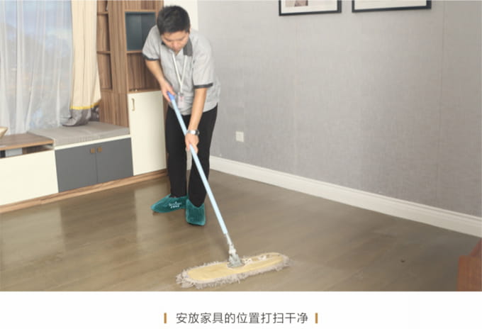 產(chǎn)品安裝確認(rèn)無誤后及時(shí)清理房間內(nèi)因安裝產(chǎn)生的垃圾并保持空氣流暢,然后用干凈的抹布將家具擦拭一遍,確保產(chǎn)品清潔,用吸塵器對(duì)安裝環(huán)境進(jìn)行清理,并對(duì)所有安裝好的產(chǎn)品拍攝記錄作為完工效果備案。