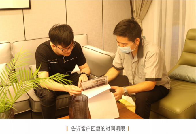 上門現(xiàn)場(chǎng)查看情況后,確定是補(bǔ)件或維修或返廠,并告知客戶大概需要多久時(shí)間能夠解決完問題并真誠地表示歉意。