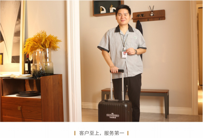 安裝并檢查完所有工作后,需與客戶清點(diǎn)并確認(rèn)產(chǎn)品,將所有帶電源的家具插上電源,告知客戶家具使用方法和功能及保養(yǎng)知識(shí)、注意事項(xiàng)等。所有帶功能的產(chǎn)品需演示給客戶看。例:
