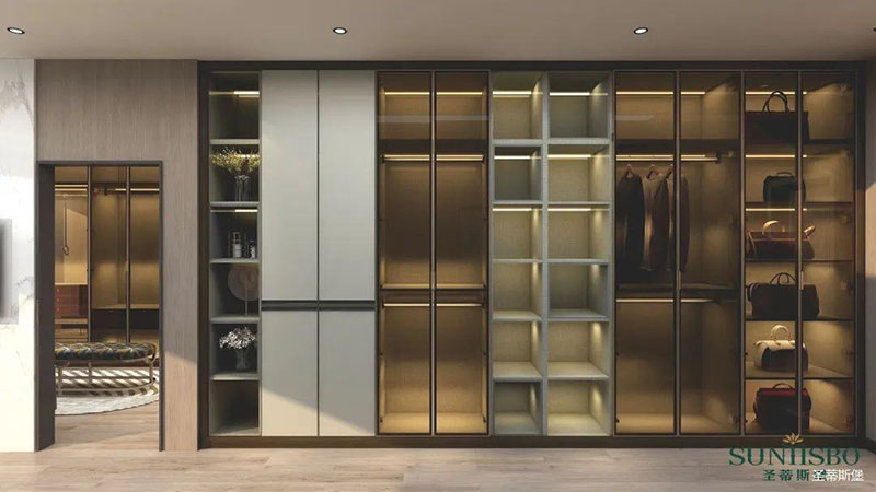 衣帽間開(kāi)放式置頂設(shè)計(jì),在追求簡(jiǎn)單到極致的基礎(chǔ)上,給人感官一種簡(jiǎn)約整潔的整體感受。打破常規(guī)的空間儲(chǔ)藏方式,脫離一切浮華與不實(shí)用,僅用最簡(jiǎn)單的線條反映出主人優(yōu)雅的高品味。