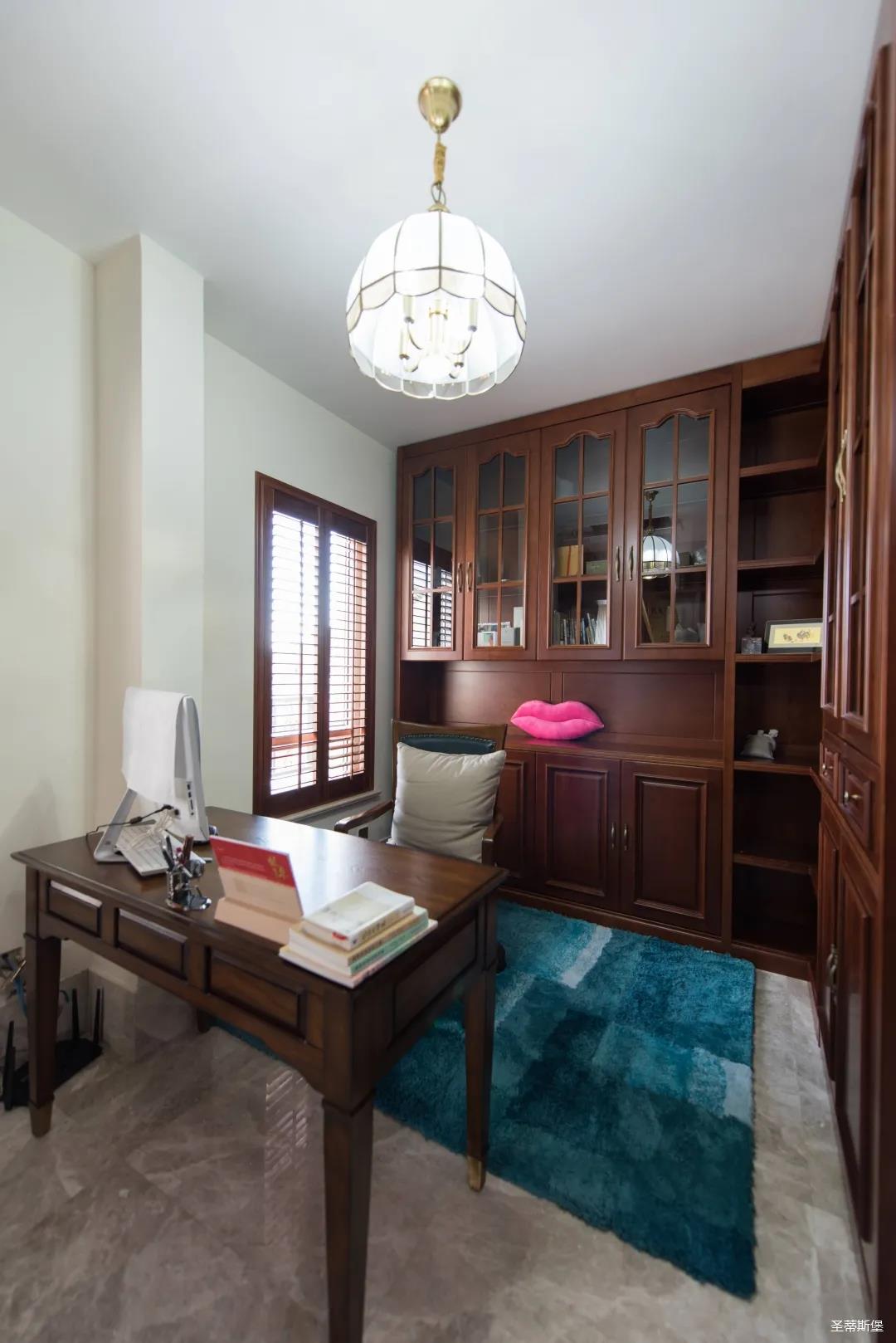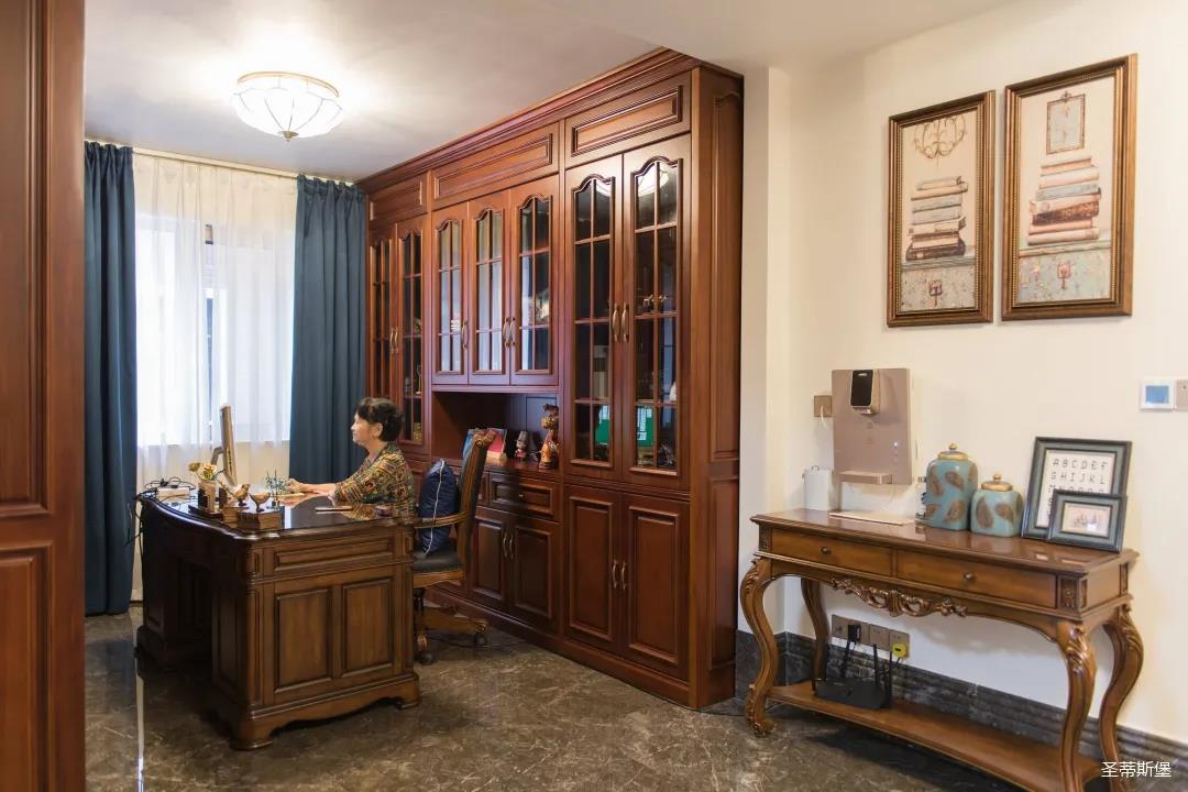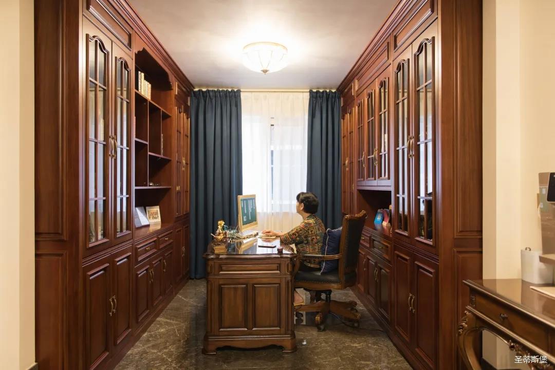 業(yè)主夫婦非常熱情好客,平時(shí)工作之余也會(huì)在家里邀三兩好友一起觀影,觀影室的整體設(shè)計(jì)容納著濃烈的古色古香,長(zhǎng)方形圖案排列搭配復(fù)古的家具與配飾,精細(xì)的雕花藝術(shù),于細(xì)節(jié)之間演繹著精致生活。不管時(shí)光如何輾轉(zhuǎn)變換,家的定義從不曾改變,它撫慰著我們的心靈,承載著我們的喜樂(lè),從細(xì)膩的質(zhì)感中感知家的點(diǎn)滴變化,才是對(duì)生活最真實(shí)的寫照。