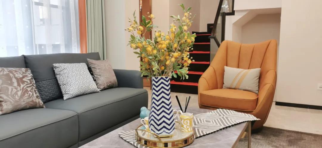 淺灰為基底的飾面與低飽和度的深色沙發(fā)相互映襯,產(chǎn)生強(qiáng)烈的視覺(jué)沖擊,深色的家具讓空間從視覺(jué)上衍生出一種縱深感。巖玻的質(zhì)感與真皮編織的紋理盡顯現(xiàn)代之美,細(xì)節(jié)陶瓷擺件注滿(mǎn)了空間優(yōu)雅的藝術(shù)氛圍。
