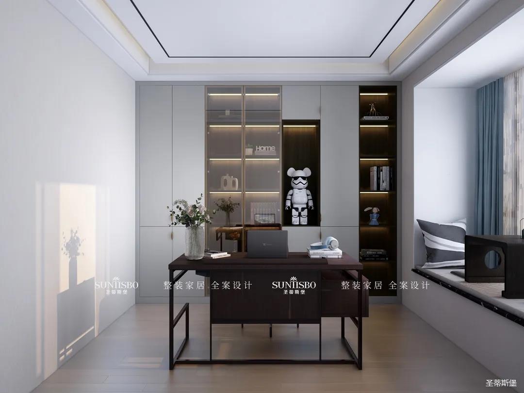 陽(yáng)光透過(guò)窗戶悄然進(jìn)入,光影浮動(dòng)間,實(shí)木書桌給書房騰出了一個(gè)安靜愜意的閱讀空間,偶爾放下書本,徑直探向窗外,慢享陽(yáng)光里慵懶的味道。