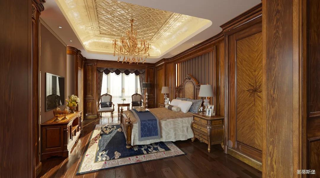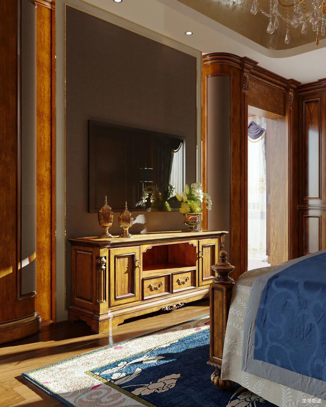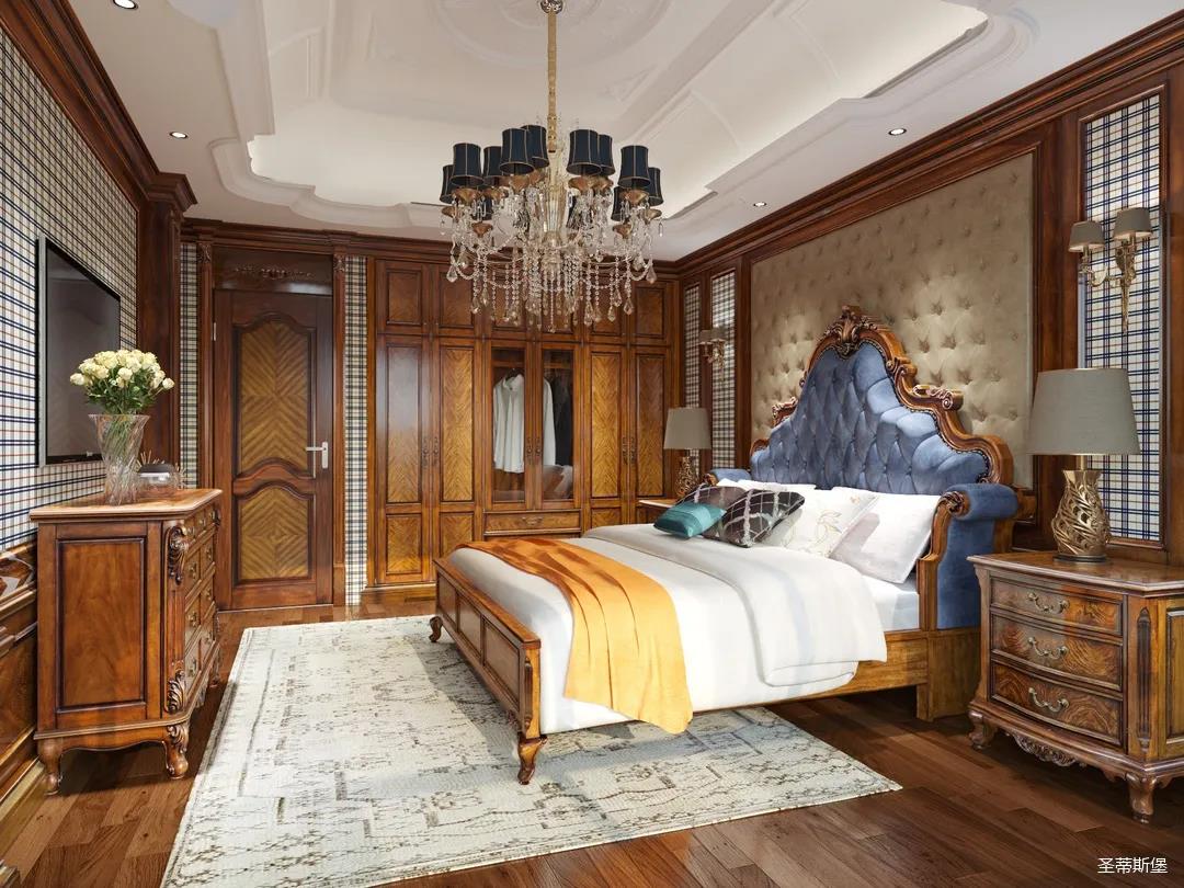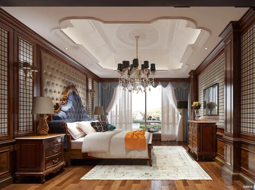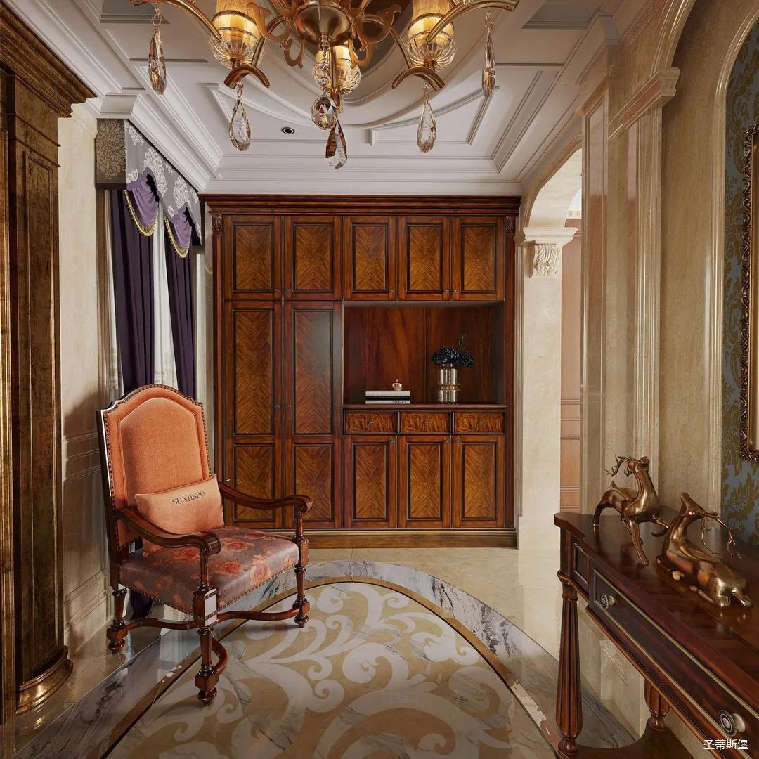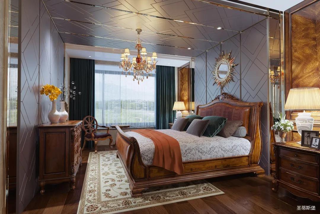 主臥整體設(shè)計(jì)是美式與現(xiàn)代的完美整合,既保留了純正美式的形和實(shí)木雕刻藝術(shù),又具有濃重的美式配色,濃濃的藝術(shù)氣息不自覺在浪漫的美式空間流淌。流暢的弧線花飾以及豐富的木作線條別具匠心。大氣穩(wěn)重與舒適雅致并重,并借由開放的布局、靈活的動(dòng)線,共同促成了整個(gè)空間極具復(fù)古浪漫的情調(diào)。
