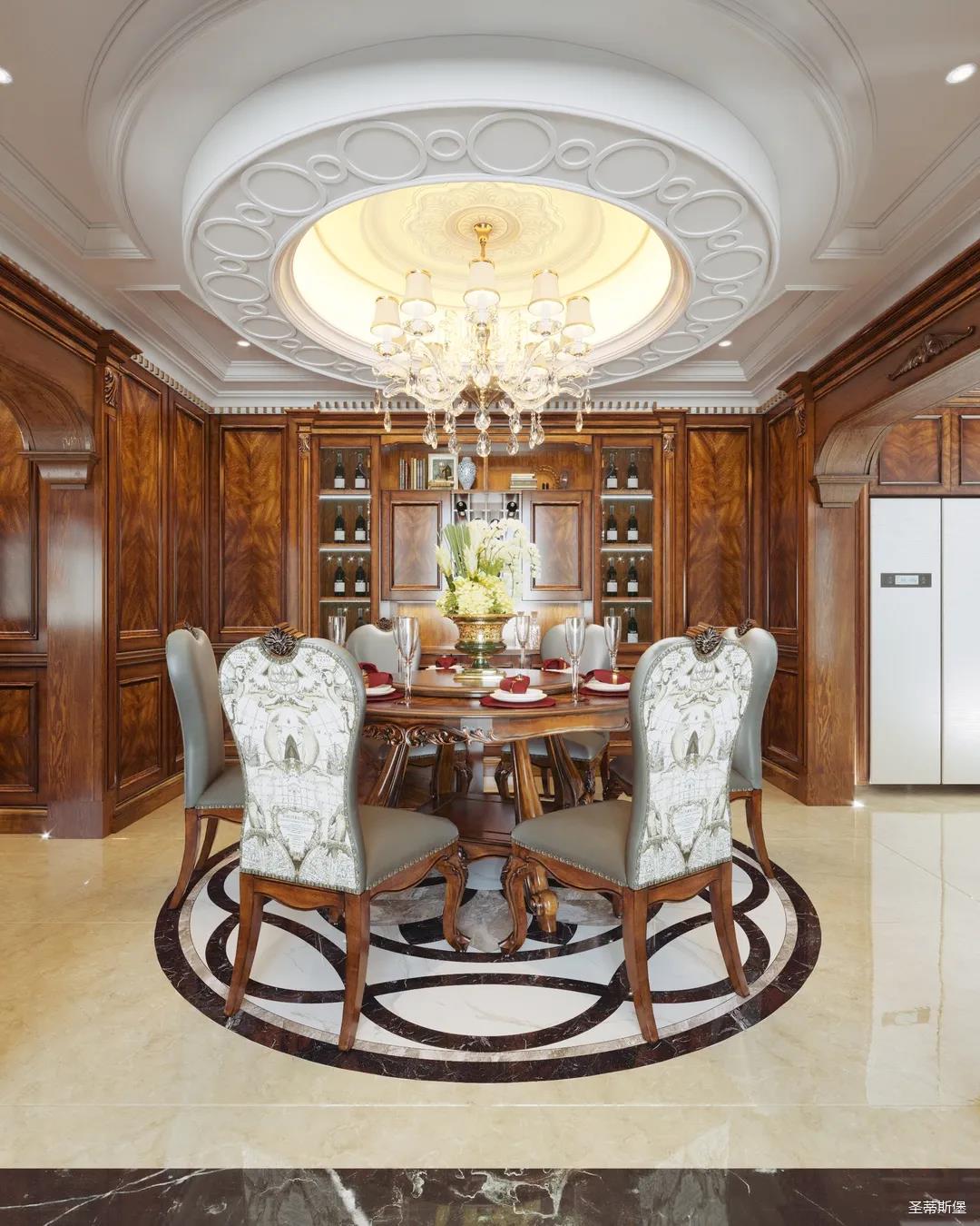 進(jìn)入玄關(guān),即刻被吸引,懷舊的啞光漆面上點(diǎn)綴著古典的輪廓線與精致的雕花,仿佛進(jìn)入了一座古老的森林城堡,神秘悠遠(yuǎn)。隨處可見的黃銅元素,不僅給室內(nèi)帶來了奢華質(zhì)感,也彰顯著主人好客氣質(zhì)。