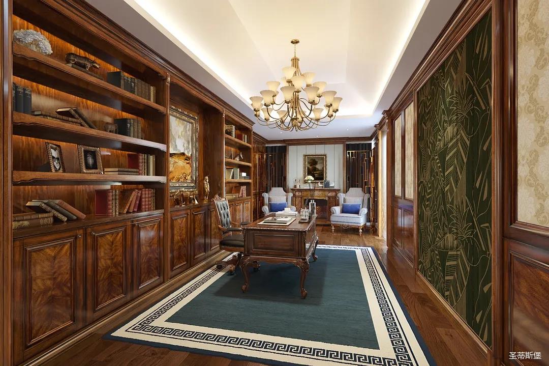 邁進(jìn)書房,仿佛就來到另一個(gè)清麗的世界,拋開身后的塵囂,恍如隔世般撫慰著辛勞一天的身心。每一物件都經(jīng)過設(shè)計(jì)師的精雕細(xì)琢,不管是布藝的紋理,木質(zhì)的雕飾,亦或是真皮的質(zhì)感,都讓大美的豪華一目了然。粗狂中透著柔美的線條,渾厚復(fù)古的色調(diào),讓空間顯得深沉而含蓄,置身其中即可感受到傳統(tǒng)的歷史痕跡與渾厚的文化底蘊(yùn)。
