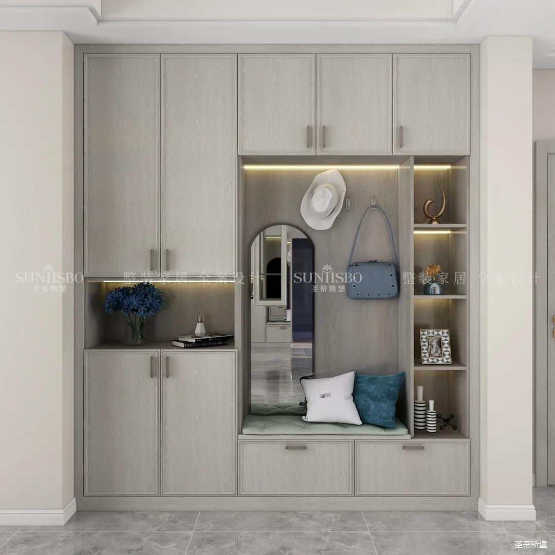 衣帽間是女主特別要求的,設(shè)計是將房間打造成衣帽間系統(tǒng),采用L型布局,壁掛式設(shè)計,讓穿搭動線更順暢,視覺上也更通透,可直觀的展示女主人穿搭品味。玻璃層板與背板花色的結(jié)合,精致靈動,成為時尚與輕奢的寫照,封閉區(qū)衣柜的合理格局規(guī)劃,完美詮釋現(xiàn)代輕奢風于當代定制中的前瞻性。