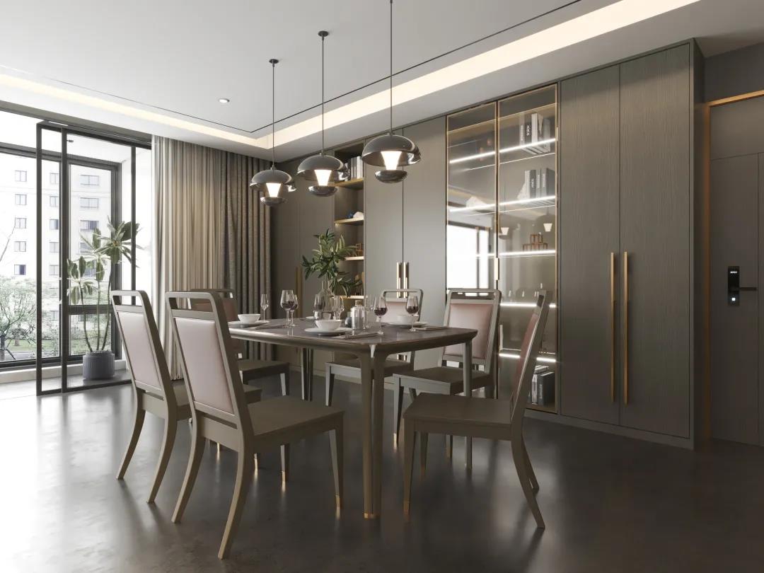 餐桌以簡潔干練造型為主,高級百搭的灰色調,軟包真皮,金屬鑲嵌的細節(jié),打造出悠閑奢華、優(yōu)雅精致的風格,讓家的味道從一日三餐中抵達內心深處。
