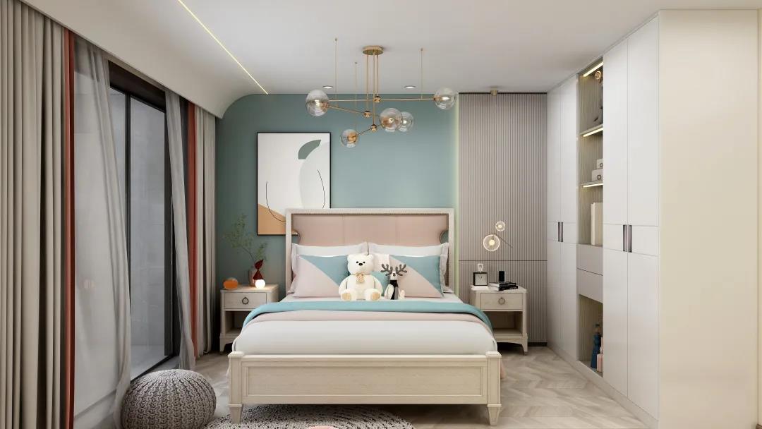 次臥淺灰色的背景墻時(shí)尚又內(nèi)斂,入目盡顯舒適的視覺感,為了避免過于單調(diào),特意搭配了與整體保持一致的拼色窗簾,作為空間色彩的點(diǎn)綴。