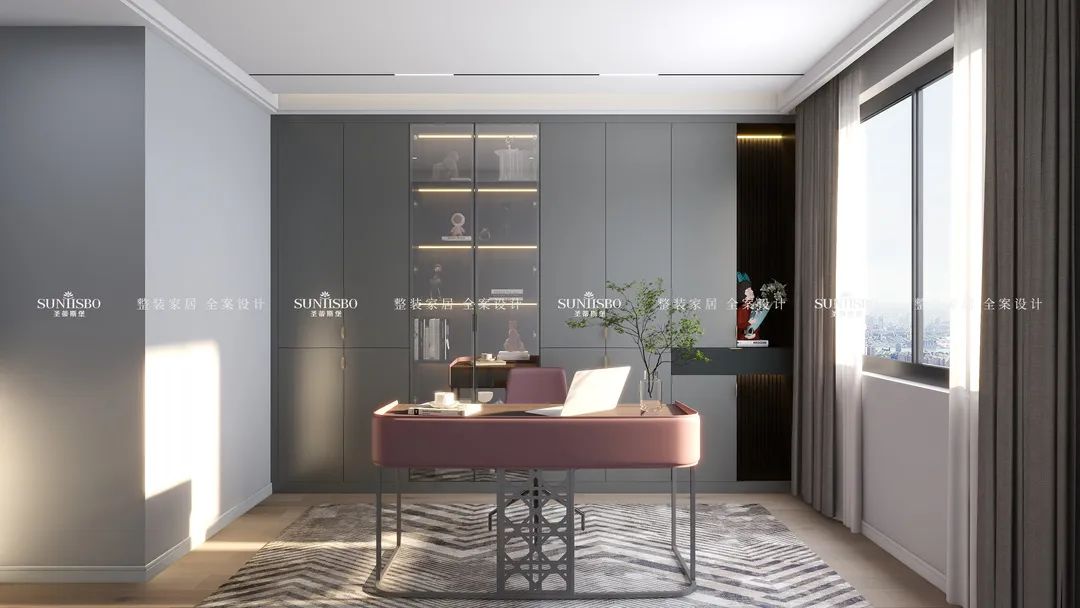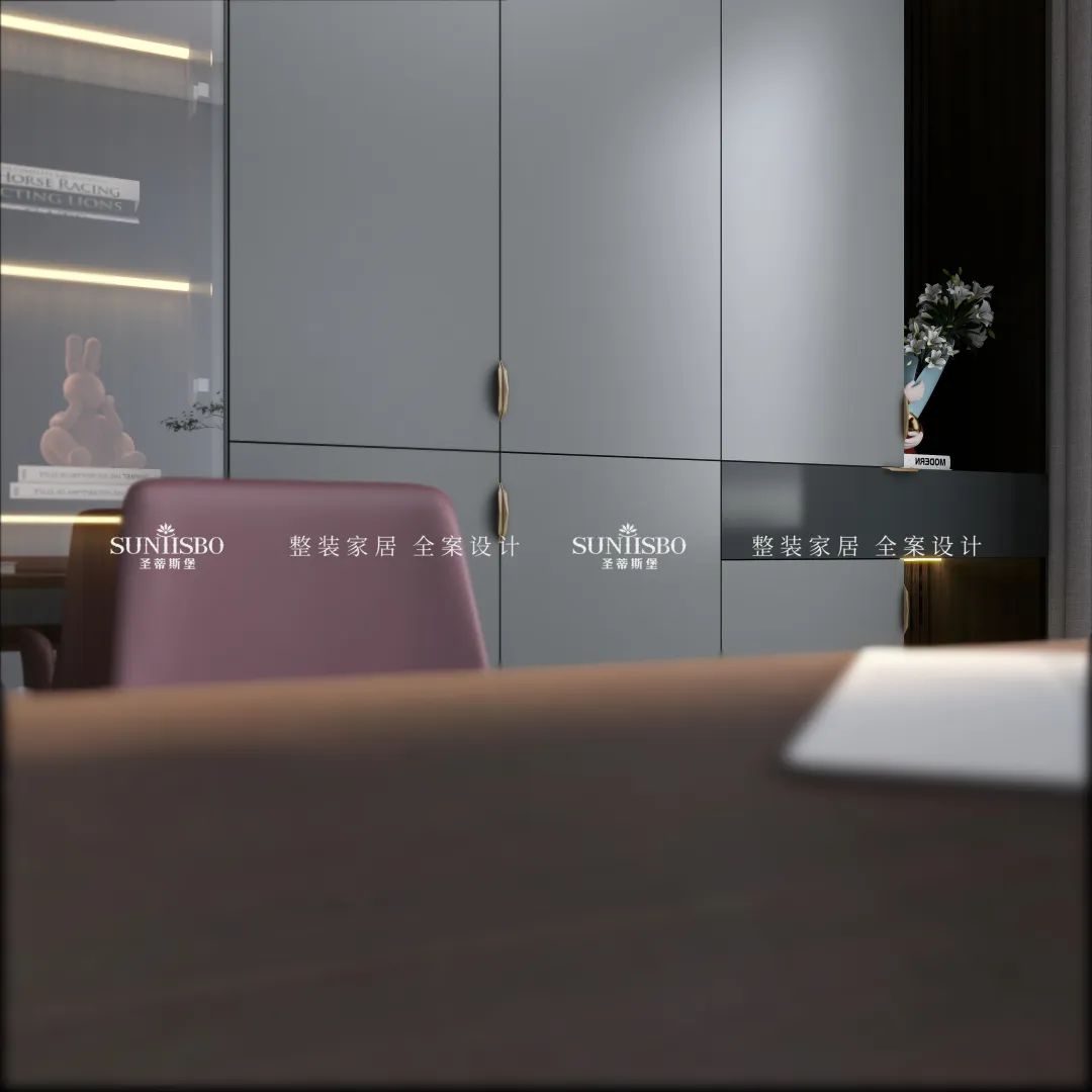 啞灰的定制書柜,冷靜理性,帶來(lái)思緒上井然有序的細(xì)密邏輯。天然原生的光感,讓視覺達(dá)到完美平衡。書房特意配上多裂綠植,讓現(xiàn)代簡(jiǎn)約與傳統(tǒng)文化結(jié)合,萌發(fā)出別出心裁的設(shè)計(jì),展現(xiàn)業(yè)主對(duì)傳統(tǒng)文化情結(jié)的喜愛。